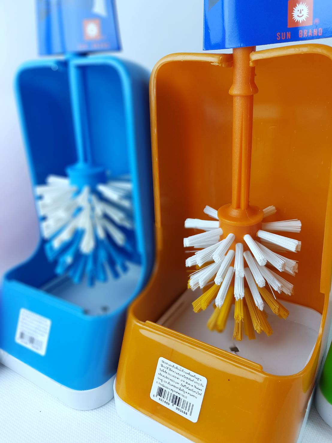 Small Evting แปรงขัดห้องน้ำหัวกลมพร้อมฐานรอง ขนาด 15 นิ้ว แปรงล้างห้องน้ำ แปรงสะอาดขนนุ่ม คละสี แปรงสุขภัณท์หัวกลม