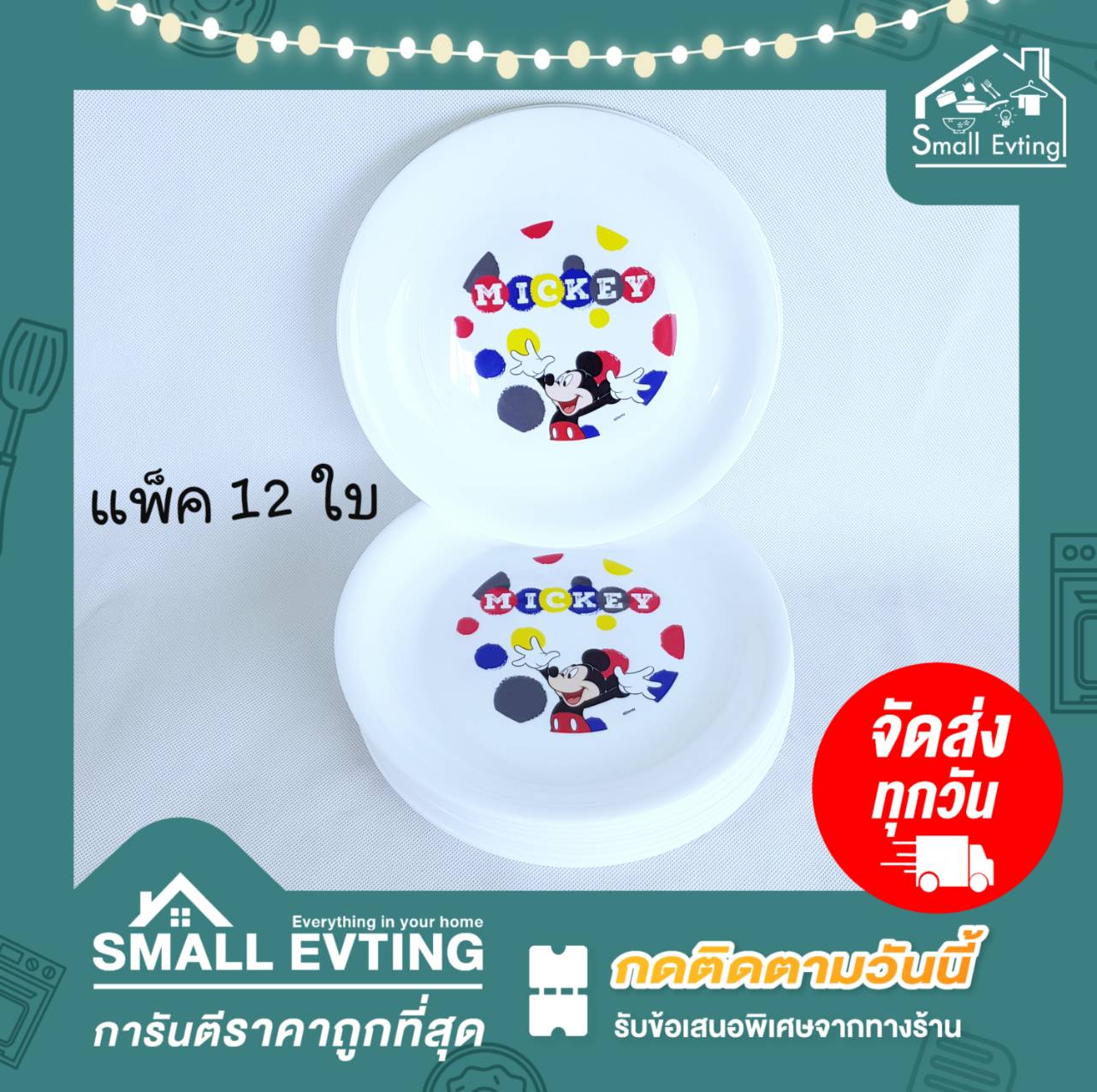 Small Evting จานกลมพลาสติก รุ่นP-11 ลายมิกกี้เม้าส์ (แพ็ค 12 ใบ) ขนาด 10 นิ้ว อย่าลืม !! กดติดตามร้าน "รับส่วนลดเพิ่ม"จานพลาสติก จานกลมใส่อาหาร มิกกี้เม้าส์ ลิขสิทธิ์แท้!!